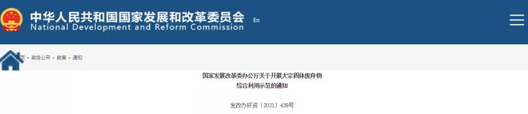據(jù)國家發(fā)改委網(wǎng)站消息,國家發(fā)改委近日發(fā)布《關(guān)于開展大宗固體廢棄物綜合利用示范的通知》(下稱《通知》)。