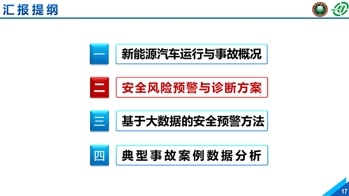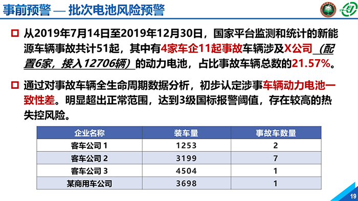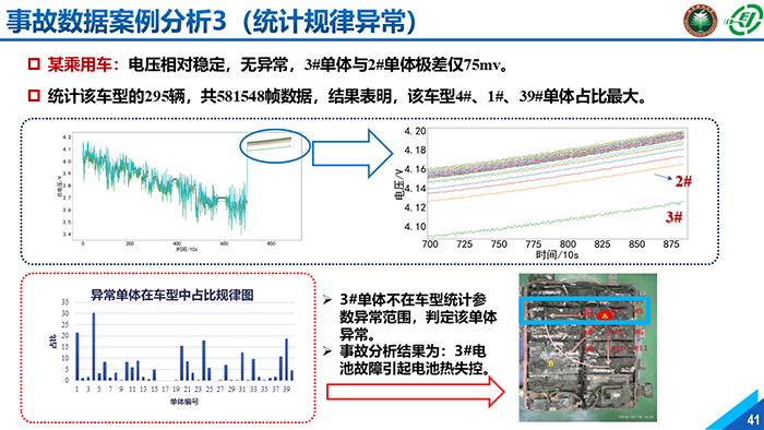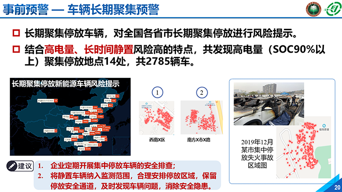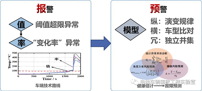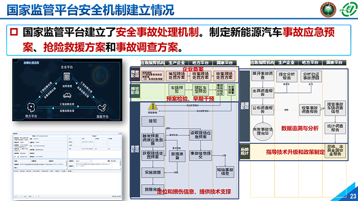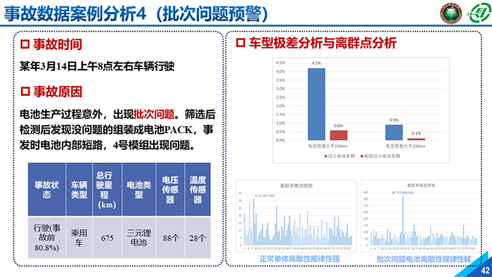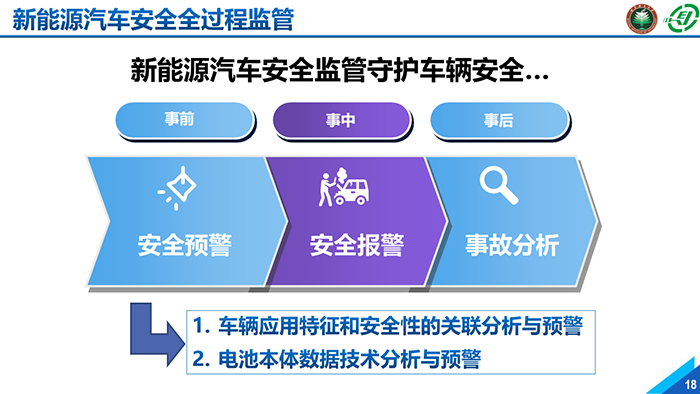 新能源汽車安全監(jiān)管是國(guó)家平臺(tái)的一項(xiàng)重要工作。國(guó)家平臺(tái)充分發(fā)揮技術(shù)優(yōu)勢(shì),建立了事故預(yù)警、報(bào)警、分析全鏈條模型,包括事前安全預(yù)警、事中安全報(bào)警、事后事故分析。其中,事前安全預(yù)警包括車輛應(yīng)用特征和安全性的關(guān)聯(lián)分析與預(yù)警以及電池本體數(shù)據(jù)技術(shù)分析與預(yù)警。一個(gè)偏向于車的使用,而另一個(gè)則偏向于電池本體的技術(shù)。它們更多是用來做一個(gè)風(fēng)險(xiǎn)的評(píng)估。