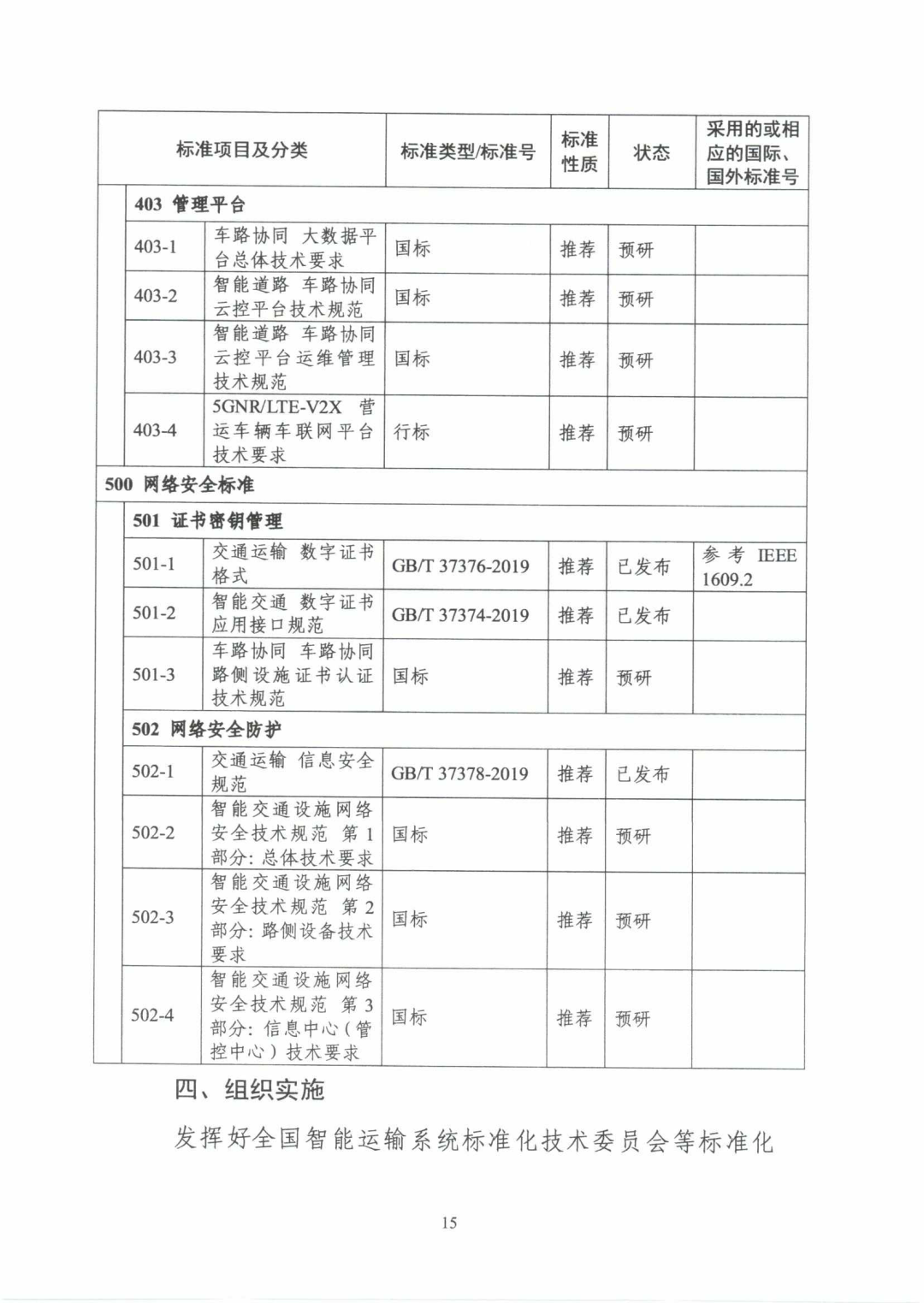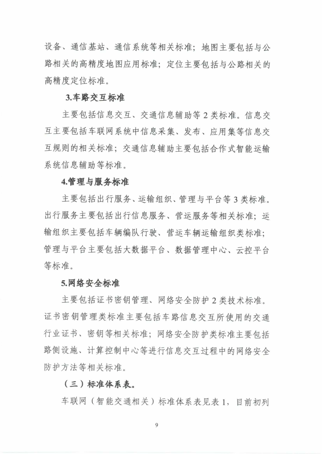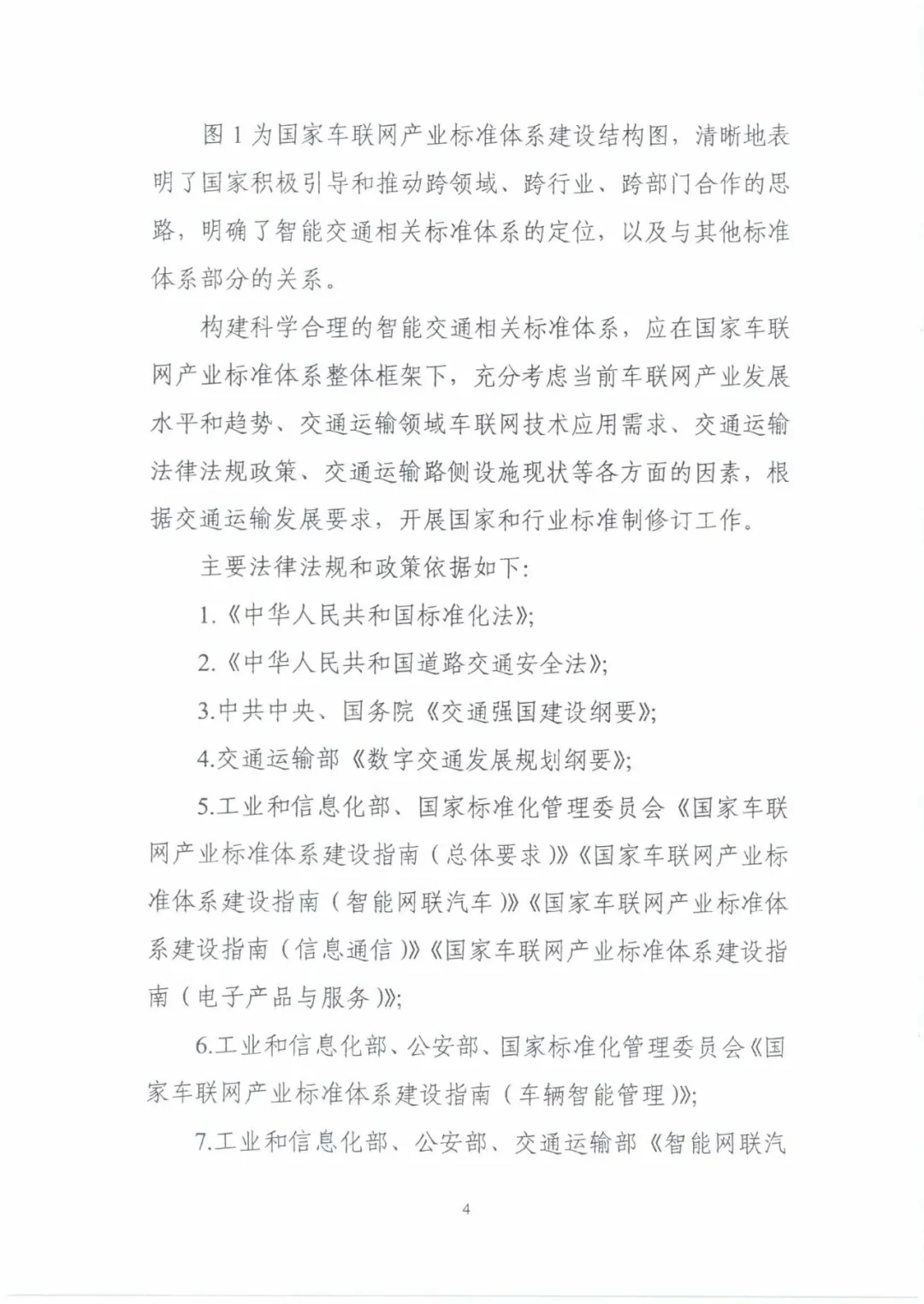 到 2025 年,制修訂智能管理和服務、車路協同等領域智能交通關鍵標準 20 項以上,系統形成能夠支撐車聯網應用、滿足交通運輸管理和服務需求的標準體系。
