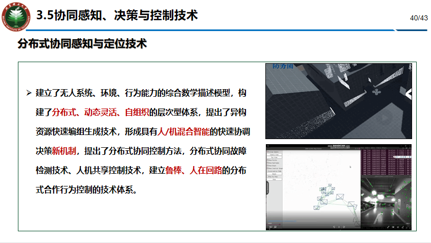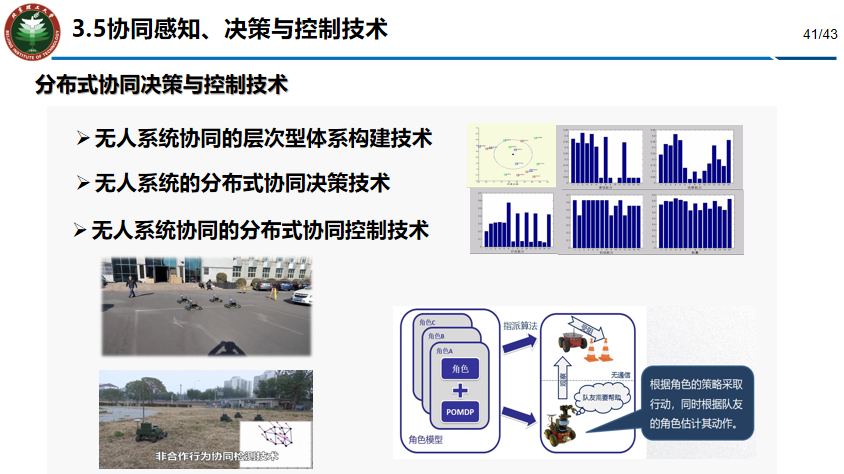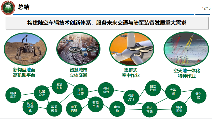在可通行區(qū)域的規(guī)劃方面,對(duì)軍用車輛來講,更多時(shí)候面對(duì)的是復(fù)雜道路、凹凸道路,沒有明確的車道線、標(biāo)志性特征的道路。那么,在這樣的道路上,可通行的狀況怎么去規(guī)劃和識(shí)別,這些技術(shù)比乘用車更具有挑戰(zhàn)性。在分布式協(xié)同決策與控制方面,我們突破了多項(xiàng)關(guān)鍵技術(shù),在若干典型場(chǎng)景下開展了相關(guān)實(shí)驗(yàn)。綜上來講,我國陸空車輛領(lǐng)域正處在研究的起步階段,還需要我們大家一起共同努力,服務(wù)于未來立體交通與陸軍裝備發(fā)展的重大需求。以上就是我給大家報(bào)告的內(nèi)容,非常感謝大家的聆聽。