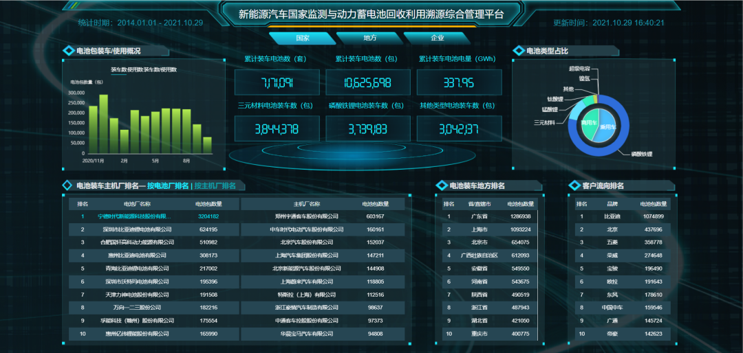 新能源汽車國家監(jiān)測與動力蓄電池回收利用溯源綜合管理平臺(簡稱“國家溯源平臺”)自2018年8月全面上線以來,國家溯源平臺平穩(wěn)運行,短短三年多的時間,電池包接入量已經(jīng)突破一千萬,截止目前接入數(shù)據(jù)的企業(yè)達到313家,平臺車輛數(shù)據(jù)超710萬輛。