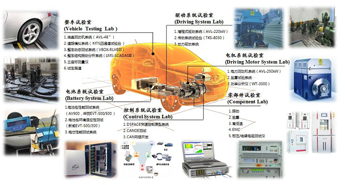 中心具有總面積2萬平米的技術(shù)檢測試驗中心,擁有整車試驗室、控制系統(tǒng)試驗室、驅(qū)動系統(tǒng)試驗室、電機系統(tǒng)試驗室、電池系統(tǒng)試驗室和零部件系統(tǒng)試驗室等6個新能源汽車試驗室和1個小型的試車跑道(包含搓板路和涉水跑道)。